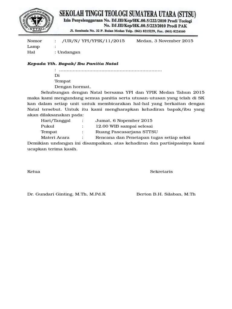 Bersama surat ini, kami segenap panitia natal gpdi immanuel km. Tag:christmast, kristen, natal, nias, yaahowu. Di salam sejahtera dalam kasih tuhan. One thought on contoh undangan natal vip. Surat undangan resmi untuk rapat, pertemuan atau sosialisasi resmi yang bisa anda gunakan sebagai contoh referensi untuk keperluan surat anda.